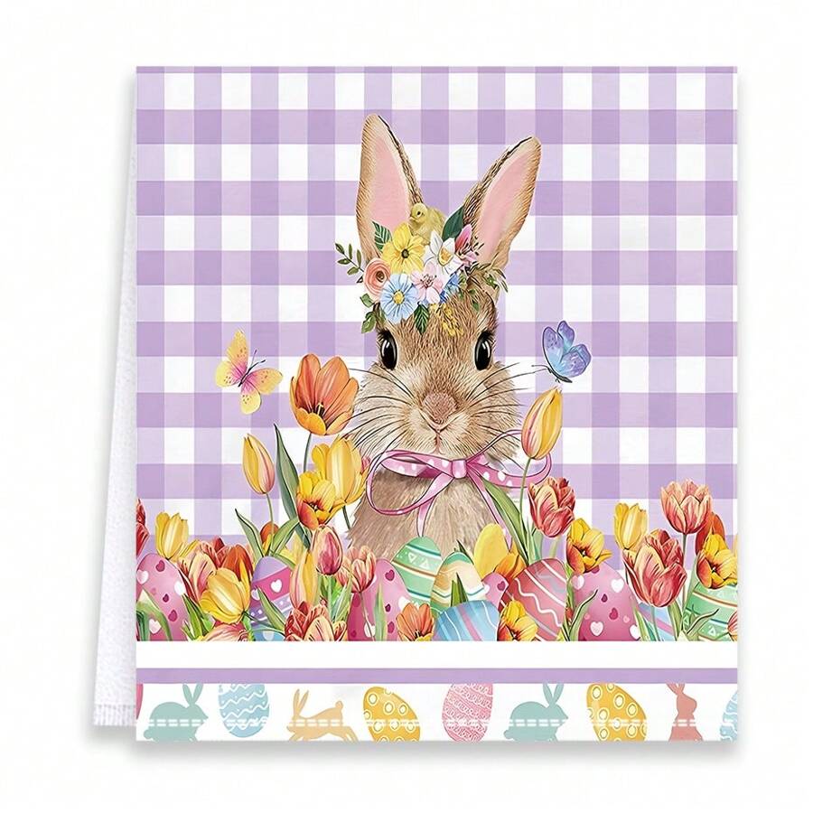 1pc Easter Bunny & Flowers & Easter Egg & Gingham Check & English Letter Print Dishcloth, Kitchen Towel, Tableware Cleaning Cloth