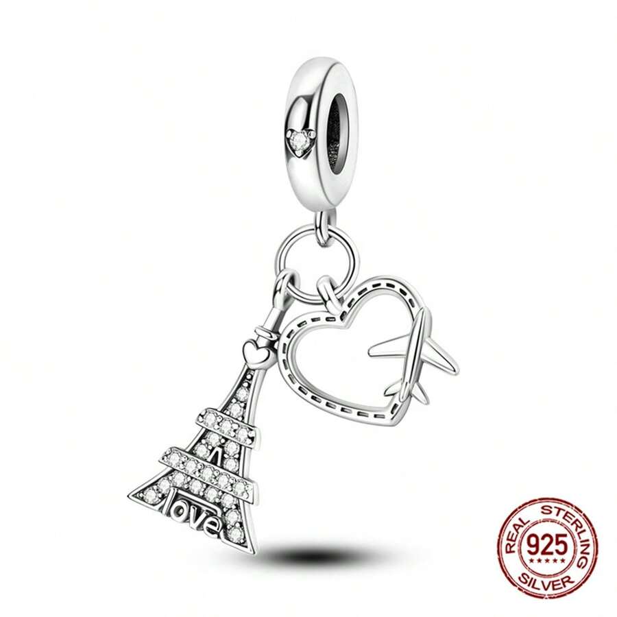 1pc Eiffel Tower 925 Sterling Silver Pendant, Landmark Architecture Souvenir, Perfect For Necklace & Bracelet, Travel Jewelry Accessory