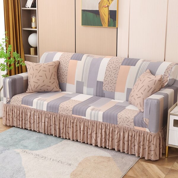 1pc Elastic Sofa Cover With Skirt, Polyester Fabric, Universal For Four Seasons, Modern And Simple Style