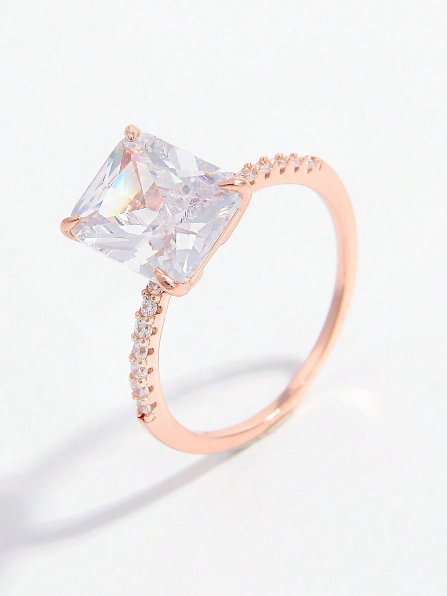 1pc Elegant & Romantic Large Artificial Square Stone Cocktail Ring With 925 Sterling Silver Band, Perfect For Engagement, Party, Wedding, Dating & Gift Giving
