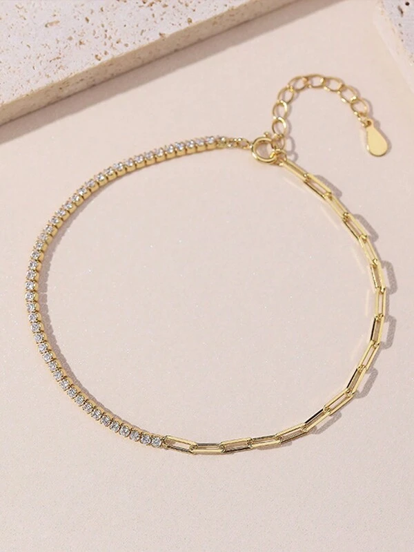 1pc Elegant 925 Sterling Silver Micro-Inlaid Diamond Silver Chain Bracelet, Minimalist Design