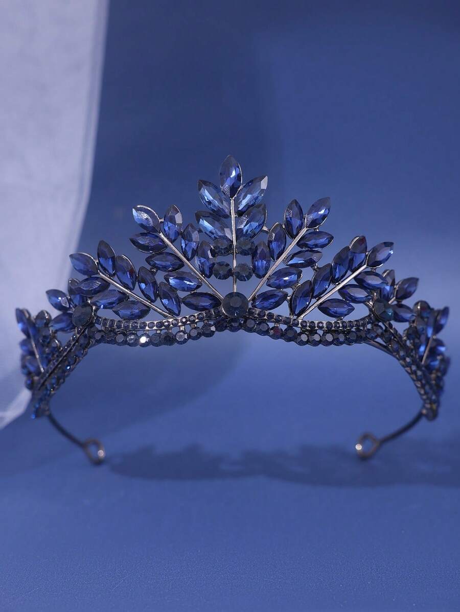 1pc Elegant Crystal Bridal Wedding Blue Luxurious Crown Set, Wedding Accessories