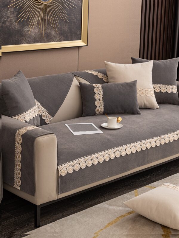 1pc Embroidered Detail Sofa Towel, Modern Polyester Sofa Cover Blanket For Home, All Season