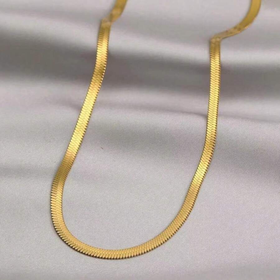 1pc Europe And America Style Titanium Steel Snake Bone Chain Ins Stacking Minimalist Gold Razor Blade Necklace Suitable For Men And Women Daily Wear