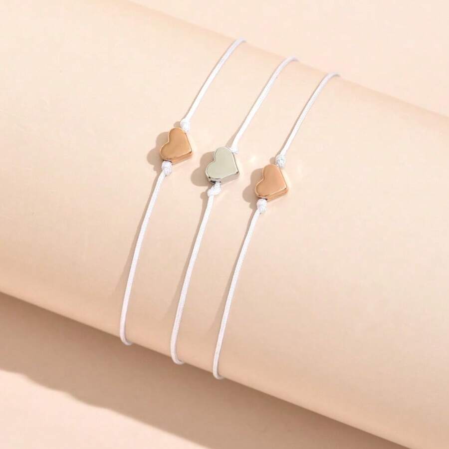 1pc European-American Fashionable Casual School Style Gold & Silver Plated Beaded Heart Charm Bracelet/Anklet For Women Friendship Gift, Jewelry Accessories