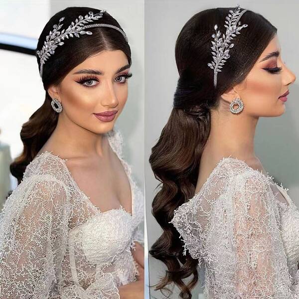 1pc European And American Bridal Headband, Luxurious Crystal Decor, Golden Leaf Alloy Hair Hoop For Wedding Dress