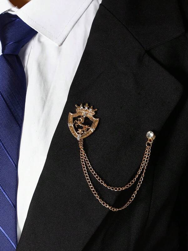 1pc European And American Fashion Simple Style Flying Horse Collar Pin Brooch Crown Badge Shirt Collar Chain