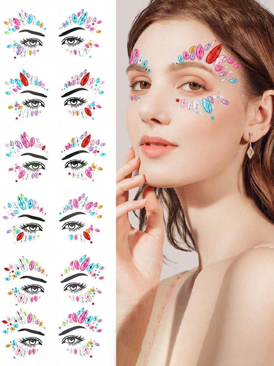 1pc European And American Festival Party Make-up Special Effect Eye/face Drop Rhinestone Stickers For Corners Of Eyes, Eyebrows And Forehead