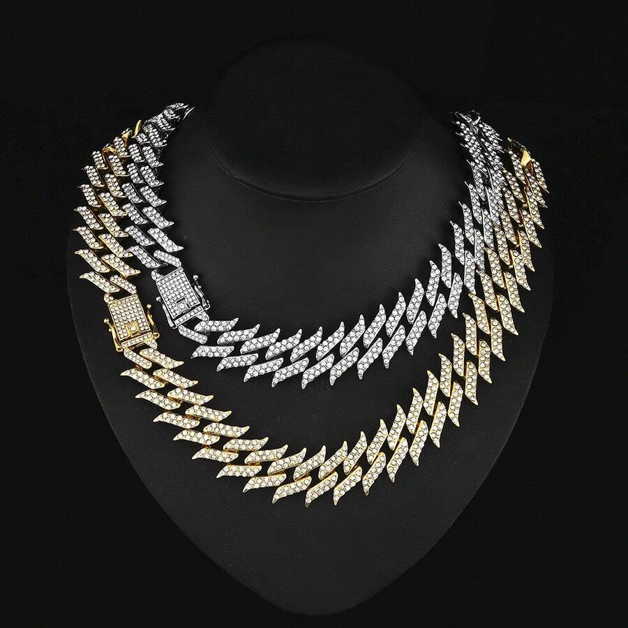 1pc European And American Men'S Alloy Hip Hop Jewelry Fully Decorated Thorn Shaped Unique Snake Bone Pendant Necklace
