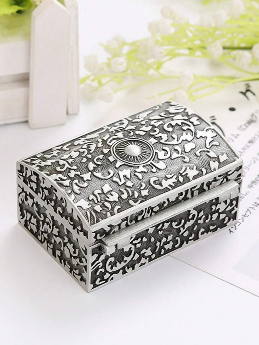1pc European And American Vintage Style Embossed Square Jewelry Box, Accessory Storage Packaging Box For Women And Children, Christmas And Birthday Gift