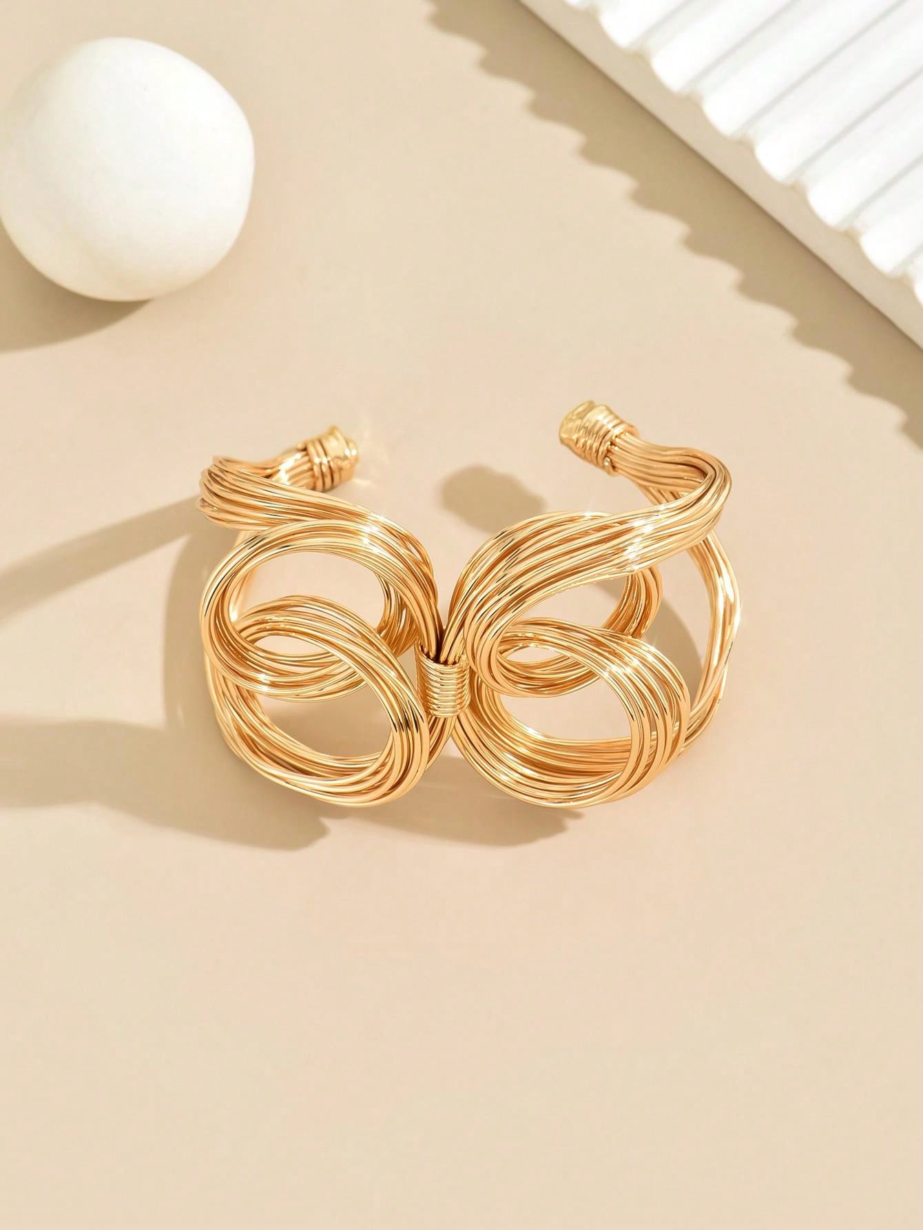 1pc Exaggerated Woven Style Wide Opening Spring Cuff Bracelet, Personalized, High-End, Fashionable, Abstract, Vintage, Exaggerated, Light Luxury, Elegant, Suitable For Wearing To Meet Friends Or Playing Outside