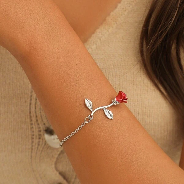 1pc Exquisite, Sweet And Lovely Rose Design Lady Bracelet