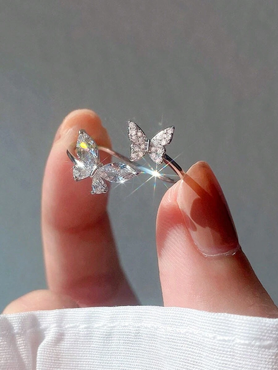 1pc Exquisite Butterfly Design Micro Inlaid Ring, Personality, Unique, Luxurious, Suitable For Women As A Fashionable Gift