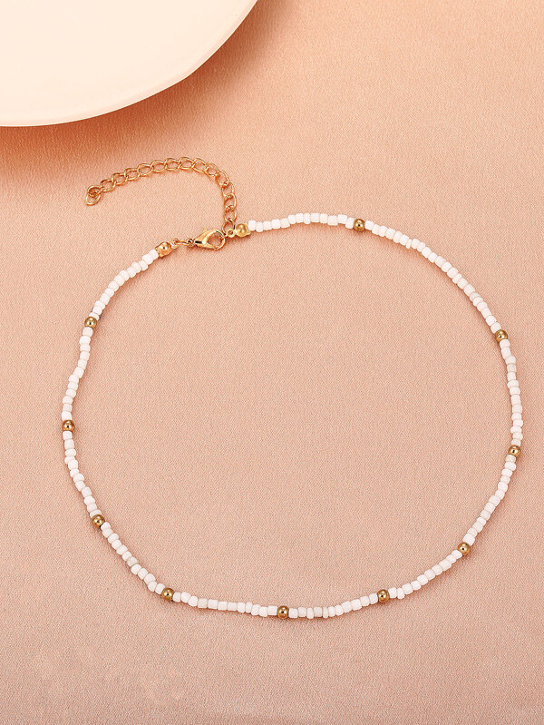 1pc Fashion Colorful Beaded White Rice Bead Necklace For Women Daily Decoration