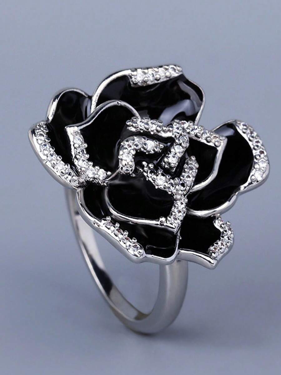 1pc Fashion Cubic Zirconia & Flower Decor Ring For Women For Party Copper Jewelry