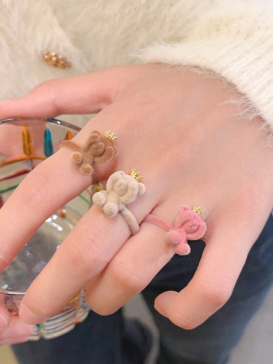 1pc Fashion Cute Cartoon Funny Bear Fuzz Adjustable Ring