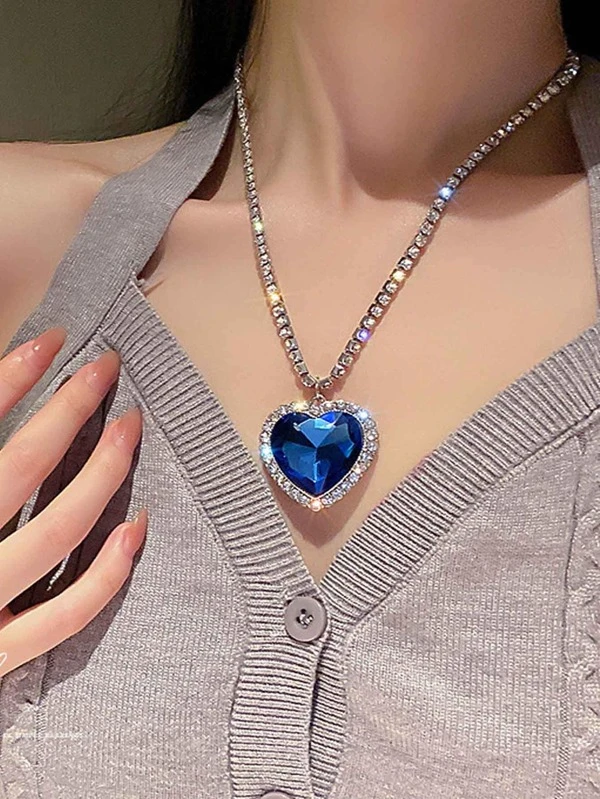 1pc Fashion Glass Rhinestone Heart Pendant Necklace For Women For Daily Decoration