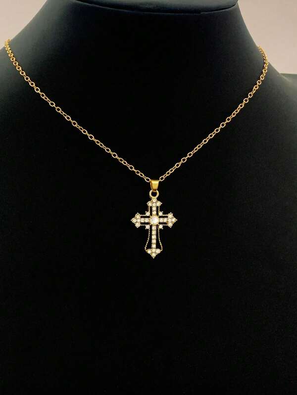 1pc Fashionable & Personalized Cubic Zirconia Inlaid 3d Cross Pendant Necklace For Party & Gift