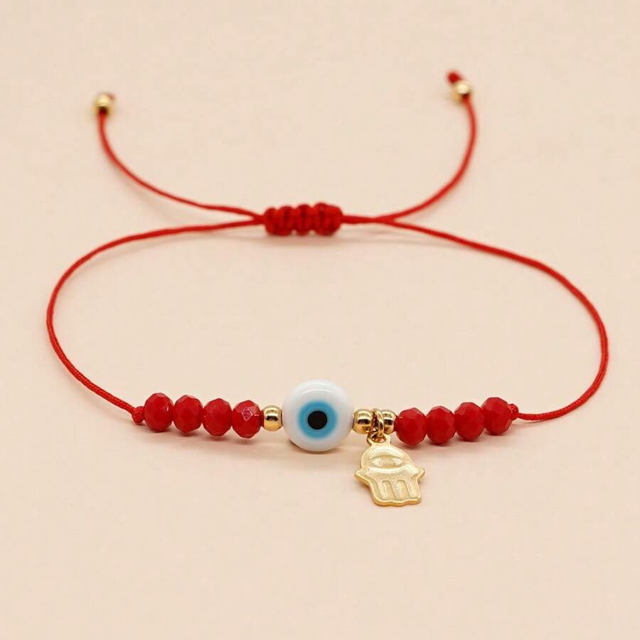 1pc Fashionable & Simple Style Hand Charm Beaded Bracelet With Crystal Beads & Glass Eyes Pendant, Suitable For Women