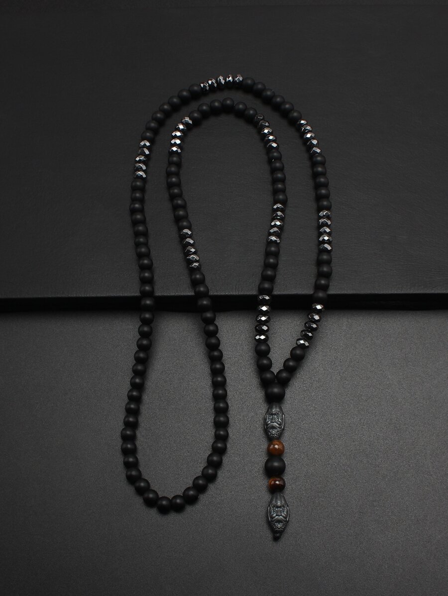 1pc Fashionable & Vintage Style Black Bead & Natural Stone Y-shaped Necklace For Men