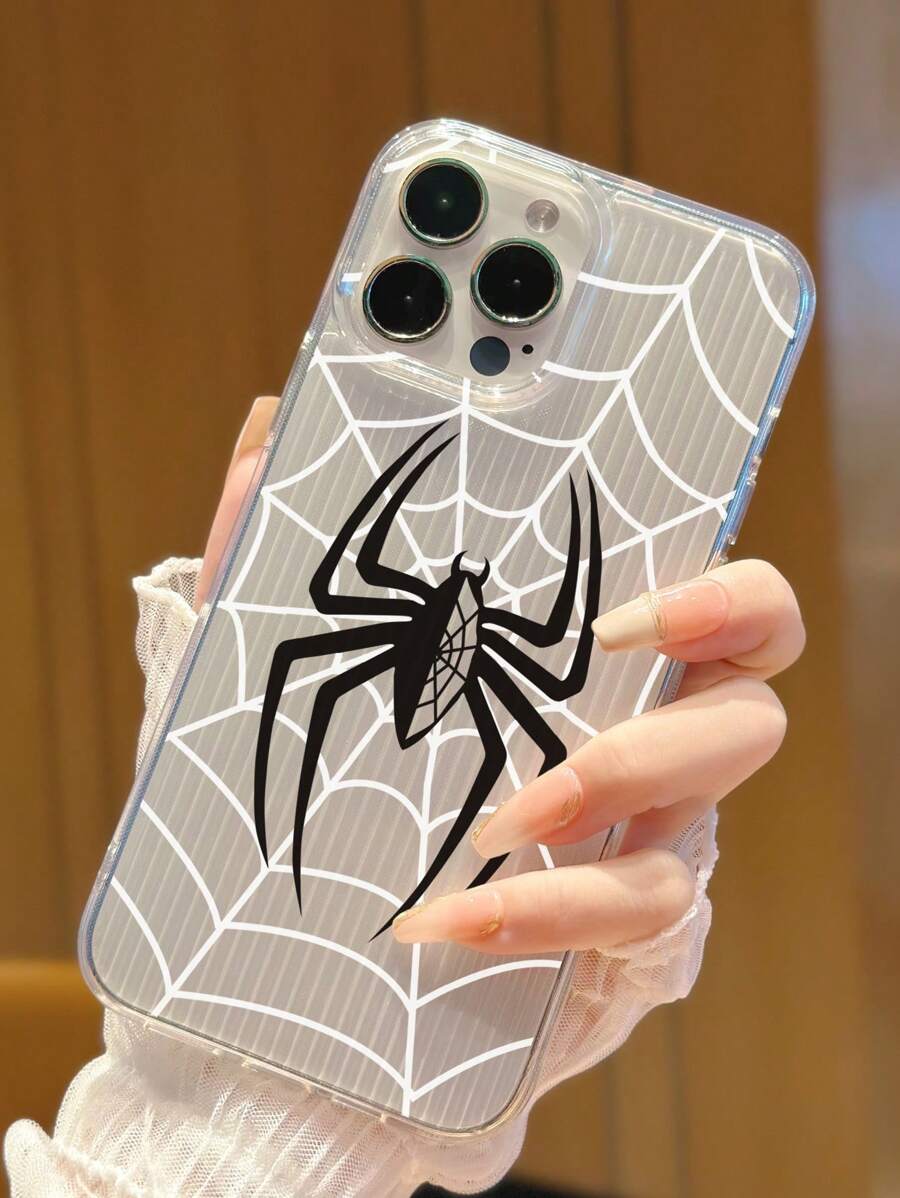 1pc Fashionable 3d Printed Spider Design Clear Phone Case With Thickened Transparent Edges For Iphone