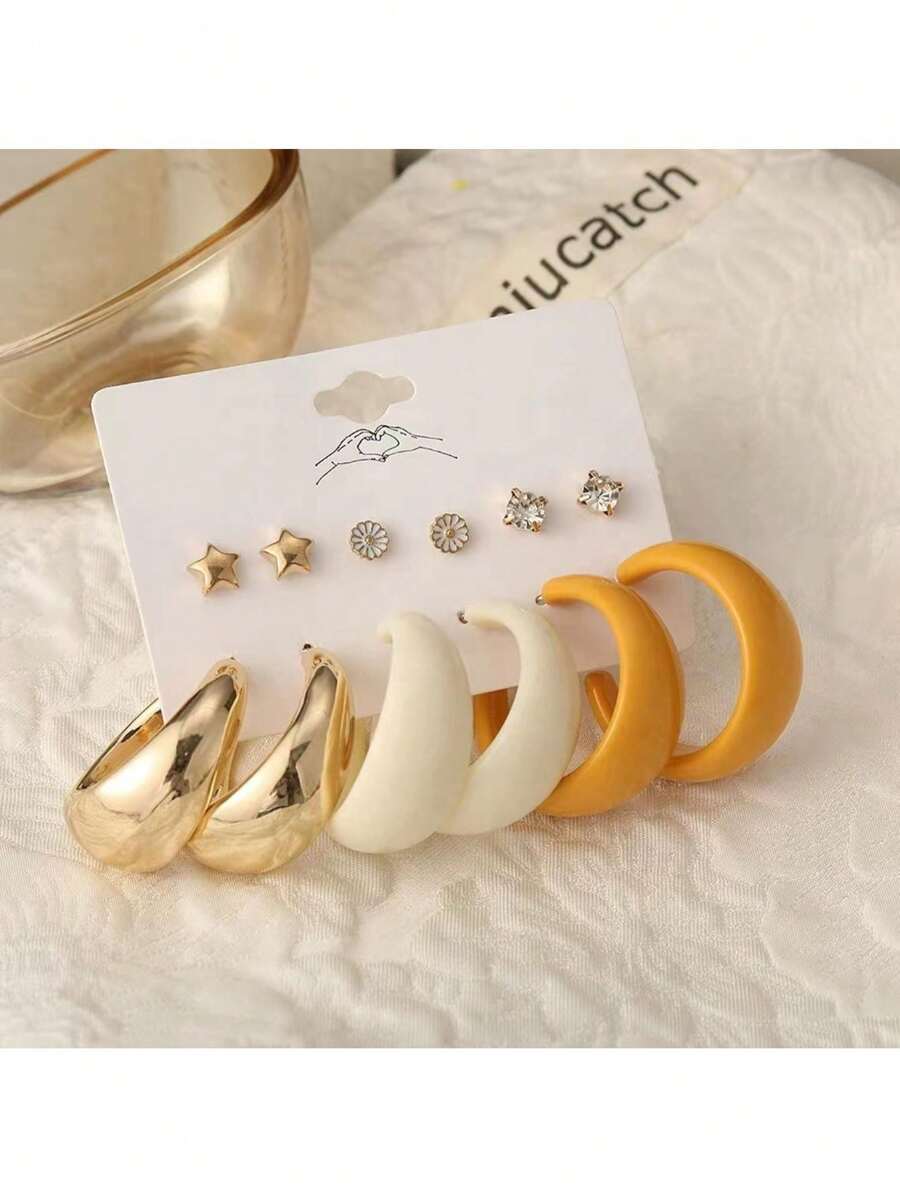 1pc Fashionable Acrylic Earrings Set, Including 6pcs Creative Simple Stud Earrings With Diamond/star Detail & C-shaped Earrings