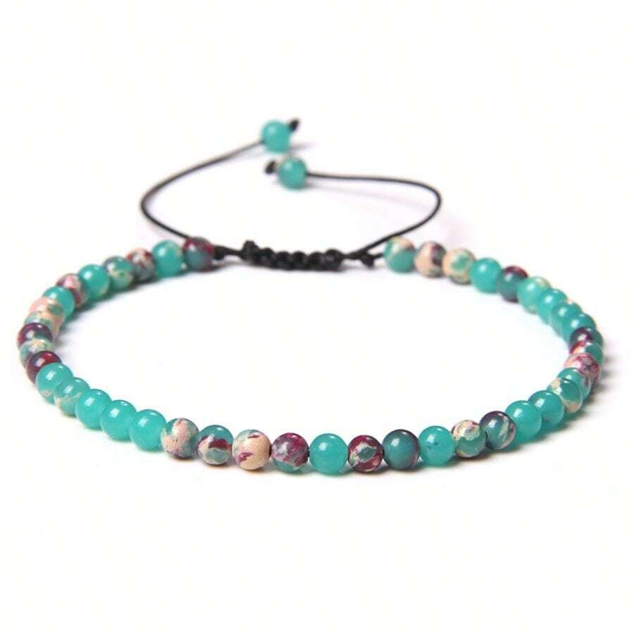 1pc Fashionable Adjustable Natural Gemstone Beaded Bracelet, 4mm Handmade Semi-precious Stone Yoga Energy Beads, Diy Jewelry, Daily Wear, Gift