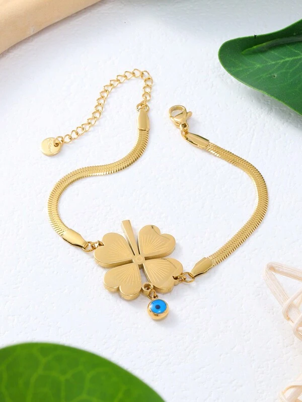 1pc Fashionable And Creative Stainless Steel Eye Decorated Bracelet With Flower Details, Great Gift For St. Patrick'S Day Party, Girls And Women