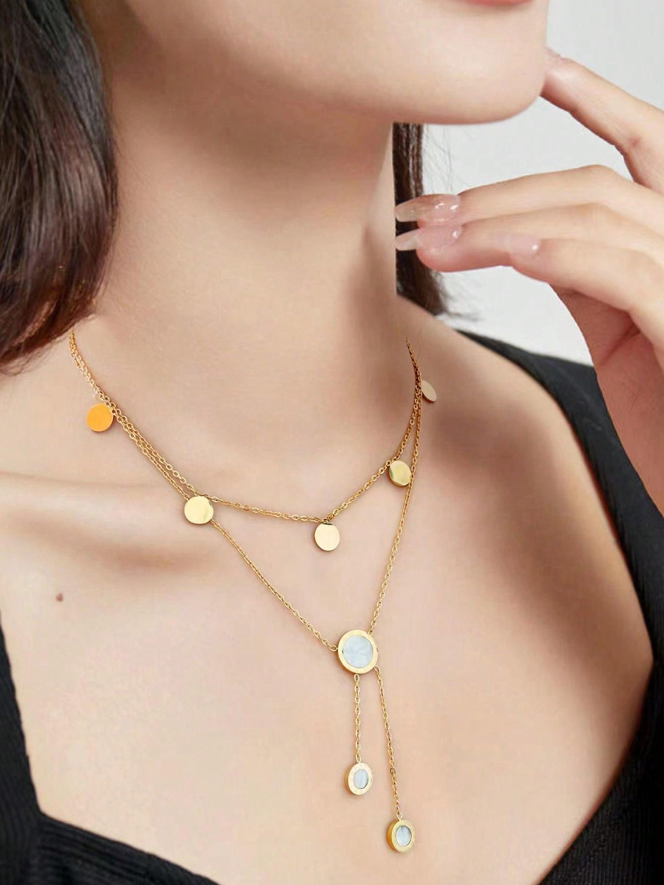 1pc Fashionable And Elegant 18k Gold Plated Double Layer Necklace Suitable For Women Wear On Banquet