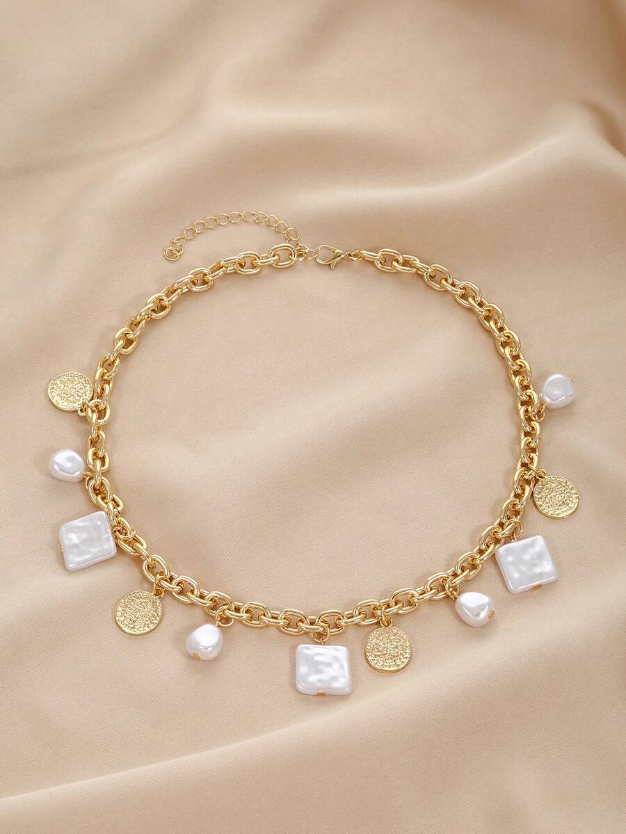 1pc Fashionable Baroque Imitation Pearl Necklace, Clavicle Chain, Sweater Chain Suitable For Women