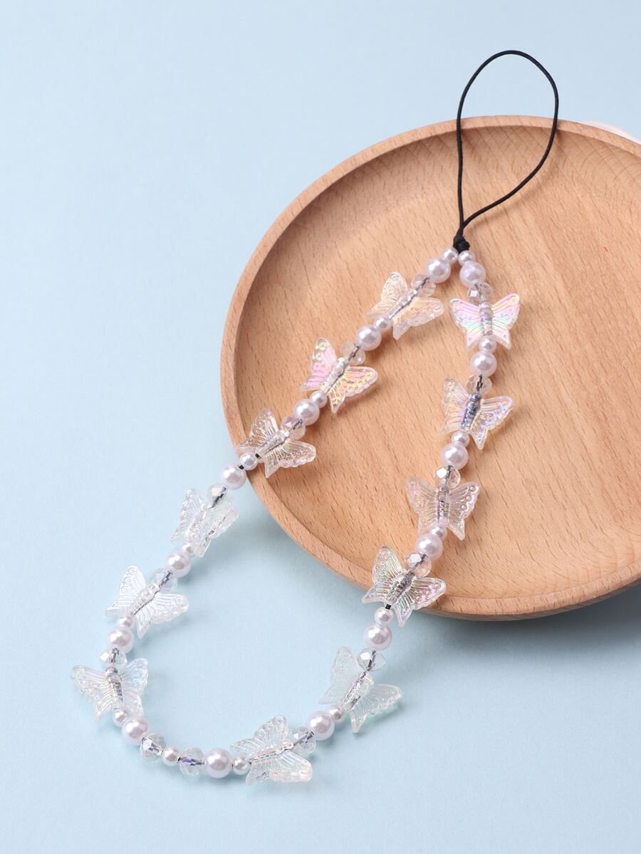 1pc Fashionable Butterfly Shaped Phone Charm Creative Diy Decoration With Acrylic & Ceramic Bead For Phone Case