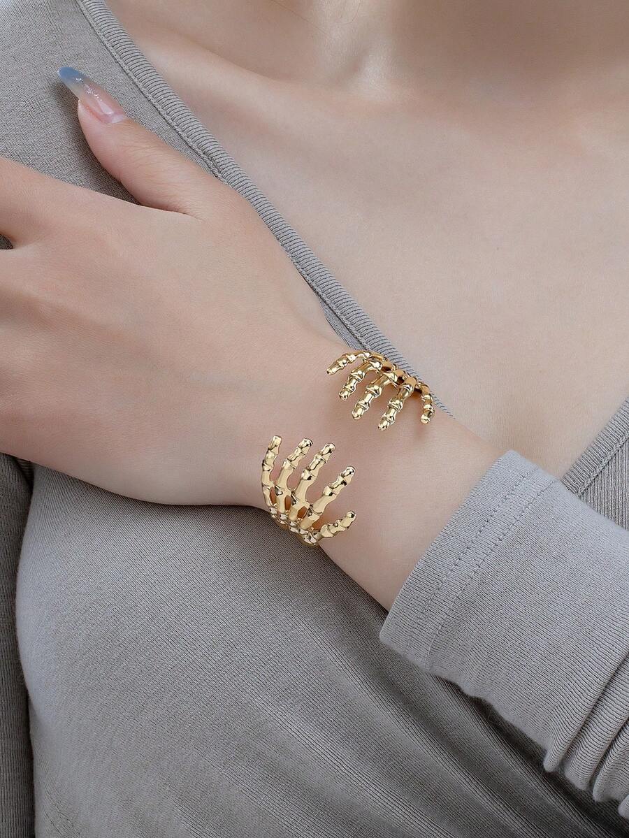 1pc Fashionable Creative Design Gold Skull Hand & Ghost Hand Shaped Bracelet With Adjustable Opening For Women, Halloween Themed Accessory
