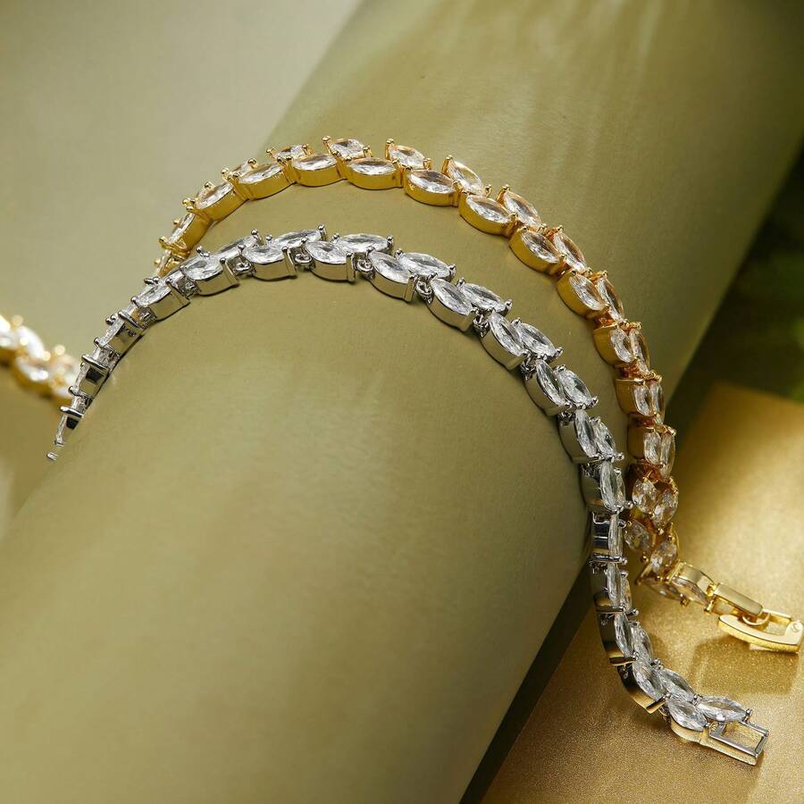 1pc Fashionable Cubic Ia Beaded Tassel Copper Bracelet Inlaid With Stone, Suitable For Wedding, Party, Birthday Gifts