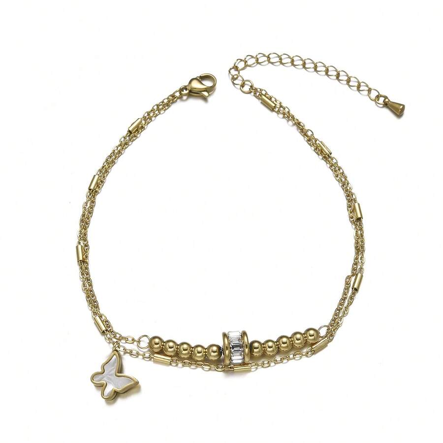 1pc Fashionable Cubic Zirconia Butterfly Decor Anklet Suitable For Women'S Daily Wear