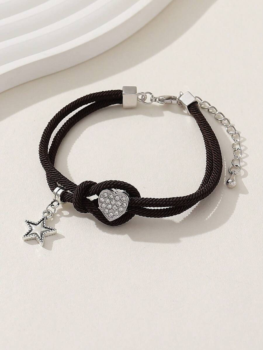 1pc Fashionable Elegant Brand Sparkling Versatile Woman/Girl Bracelet Heart & Star Shaped Fake Diamond Holiday/Gift/Party/Nightclub/Leisure/Everyday Wear