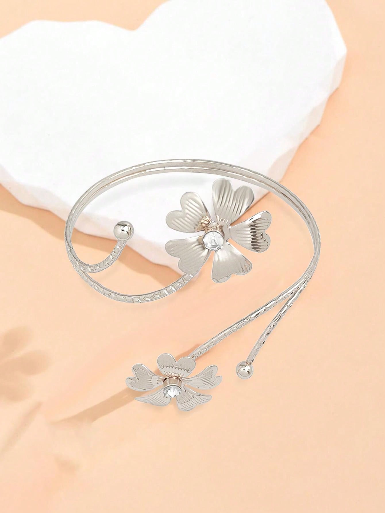1pc Fashionable Exaggerated Personalized Punk Style Metallic Flower Armlet Adjustable Open Bangle, Christmas & Valentine's Day Gift For Women