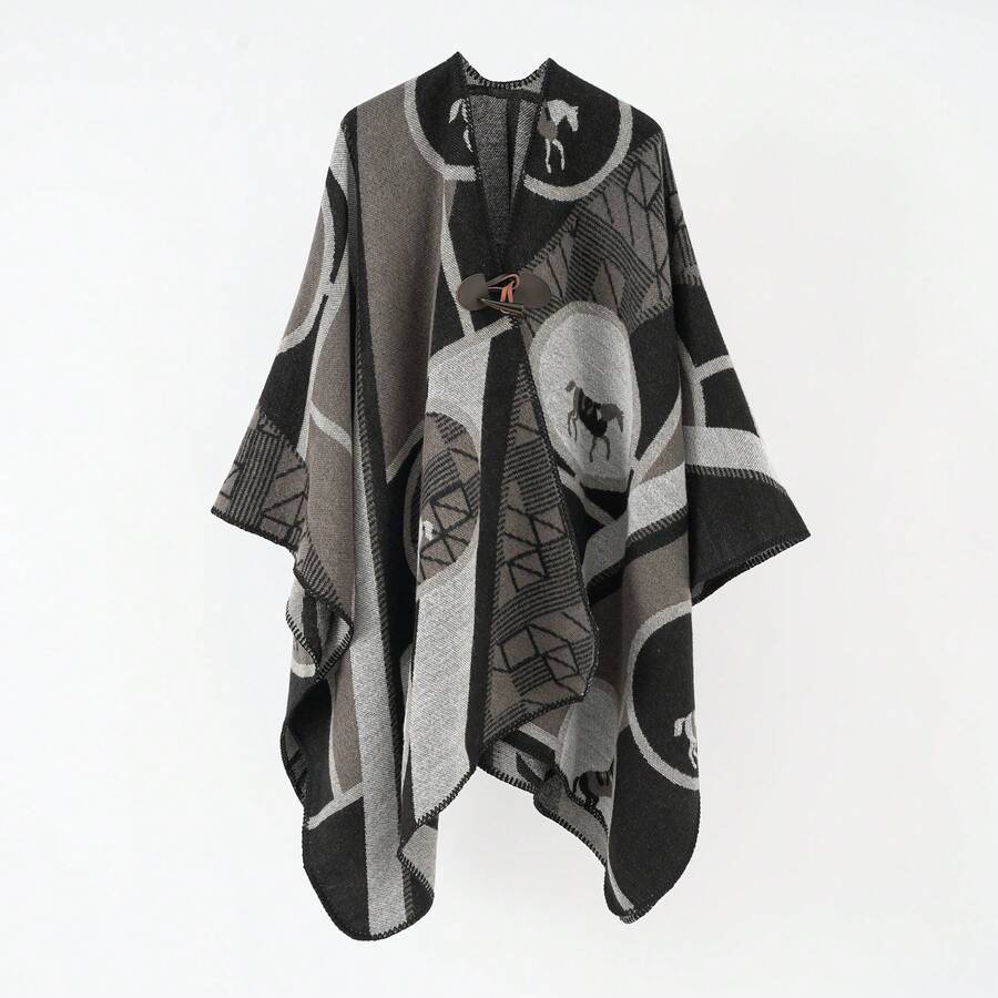 1pc Fashionable Grey Striped Spliced Autumn/Winter Travel Shawl, Windproof And Warm, Faux Cashmere