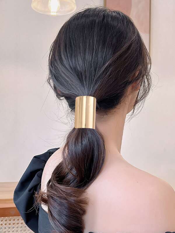 1pc Fashionable Half-covered Ponytail Holder – Decorative Clasp For Thick Hair | Ladies' Large Open Metal Hair Clip | Stylish Semi-covered Hairpin And Half Round Hook Type Clip (gold)