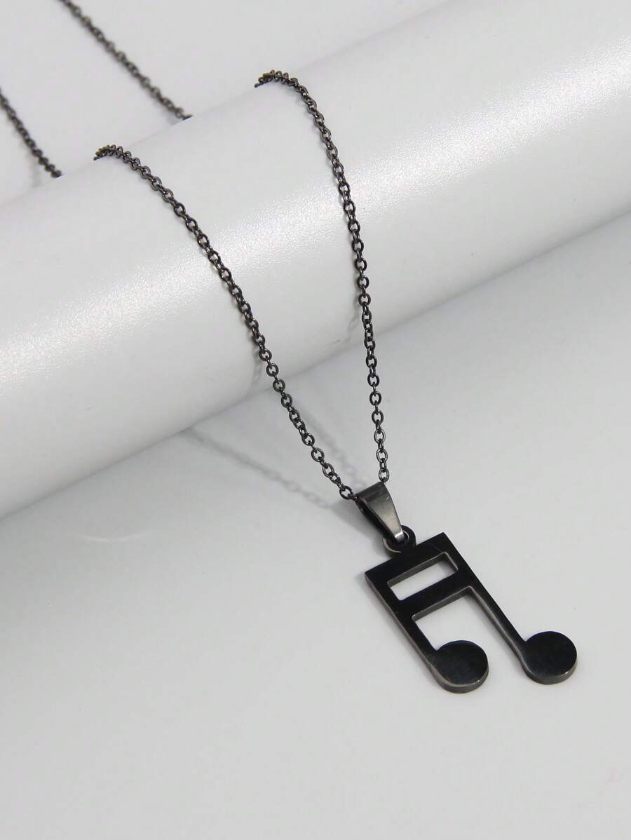 1pc Fashionable Hip Hop Style Stainless Steel Black Music Note Pendant Women's Necklace