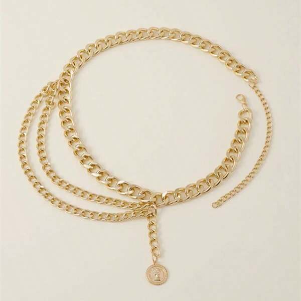 1pc Fashionable Metal Chain Waist Chain With Portrait Pendant And Tassel Decoration, Suitable For Women'S Daily Wear, Dress Decor, Etc.
