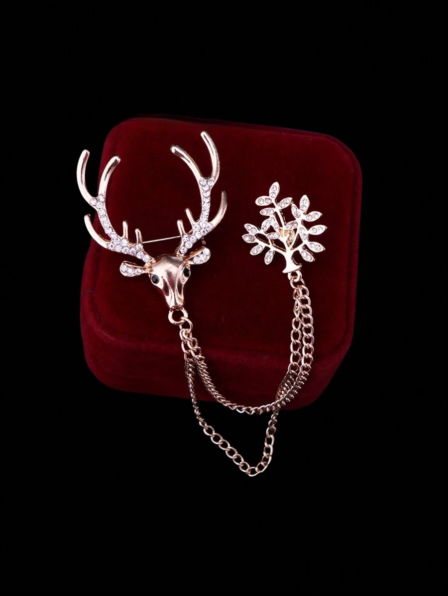 1pc Fashionable Rhinestone Decor Simple Christmas Reindeer Tassel Brooch For Suit, Shirt, Great For Men And Women To Wear In Daily Life
