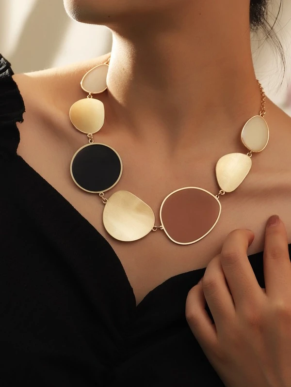 1pc Fashionable Simple Style Round Disc Smooth Surface Women's Necklace