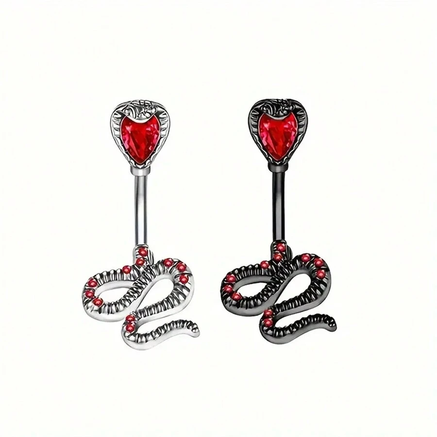 1pc Fashionable Stainless Steel Bat Navel Button Ring, Snake Belly Button Ring, Piercing