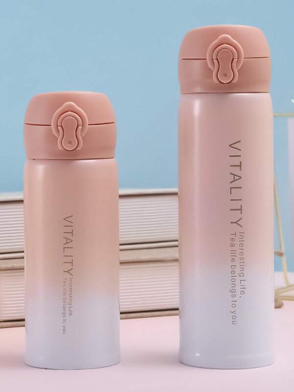 1pc Fashionable Stainless Steel Leak-Proof Water Bottle With Gradient Color And Locking Lid