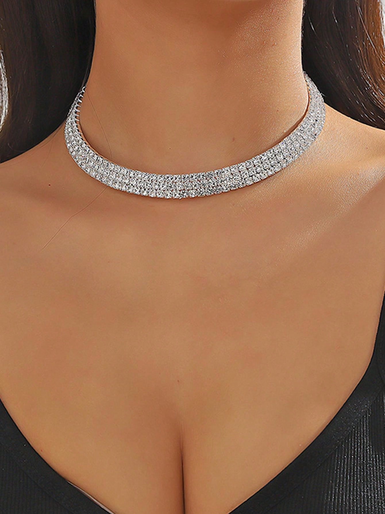 1pc Fashionable Three Layers Lock Collar Necklace Inlaid With Rhinestones, Suitable For Ladies' Daily Wear And Party Decoration.