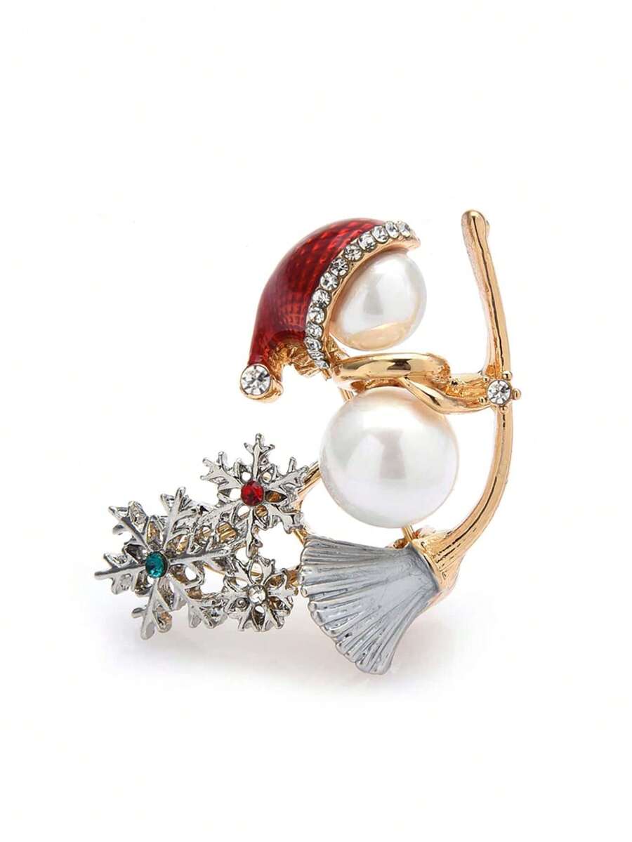 1pc Fashionable Zinc Alloy Rhinestone Decor Christmas Snowman & Snowflake Design Brooch For Women For Daily Decoration