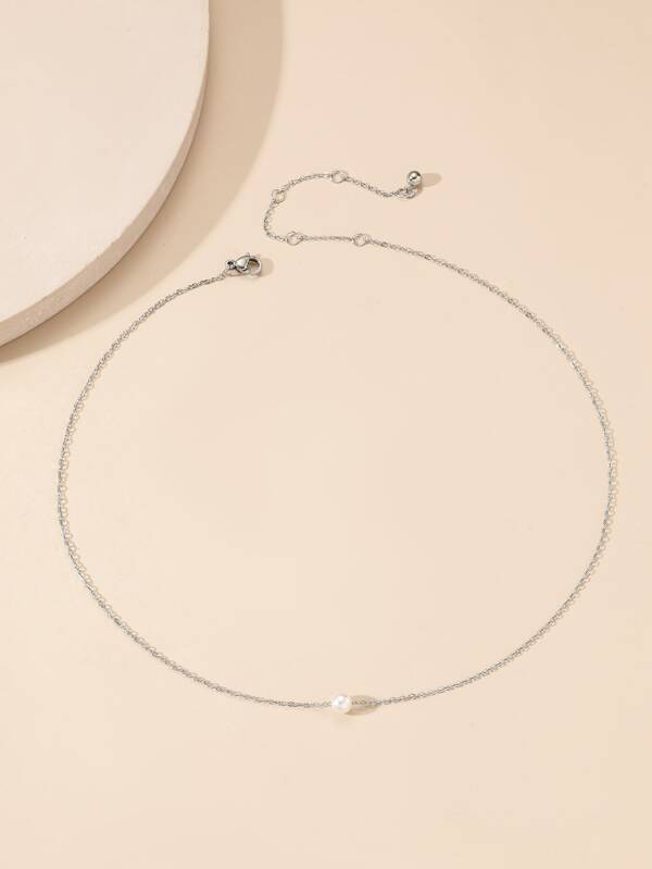 1pc Faux Pearl Decor Necklace, Stainless Steel Jewelry