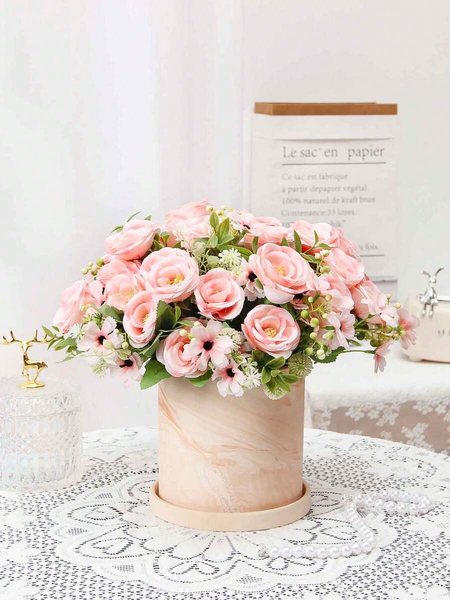 1pc Faux Rose Flower With Full Bloom Head, Ins Style Suitable For Home Diy Flower Arrangements, Outdoor Garden Wedding, Vase Decoration, Camellia Sinensis