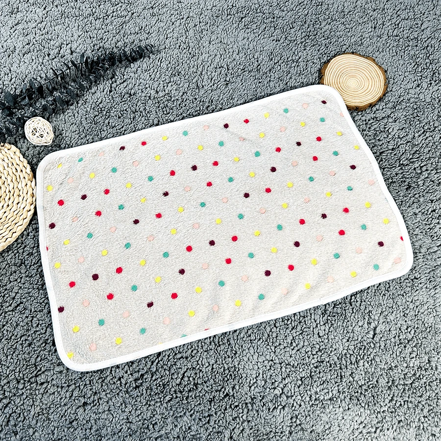 1pc Flannel Colorful Dot Print Coffee Color Pet Blanket, Suitable For Large, Medium And Small Pets, Indoor Use
