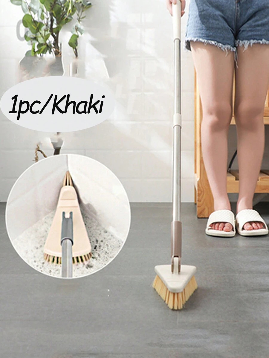 1pc Floor Scrub Brush Shower Scrubber Cleaning Bath Tub And Tile Scrubber Brush Long Handle Detachable Stiff Bristles , Bendable Head Bath Tub And Tile Scrub Brush,For Cleaning Shower Bathroom Kitchen Balcony Floor Wall Cleaning Supplies, Cleaning Tool, 37.4" Length(Khaki)